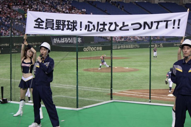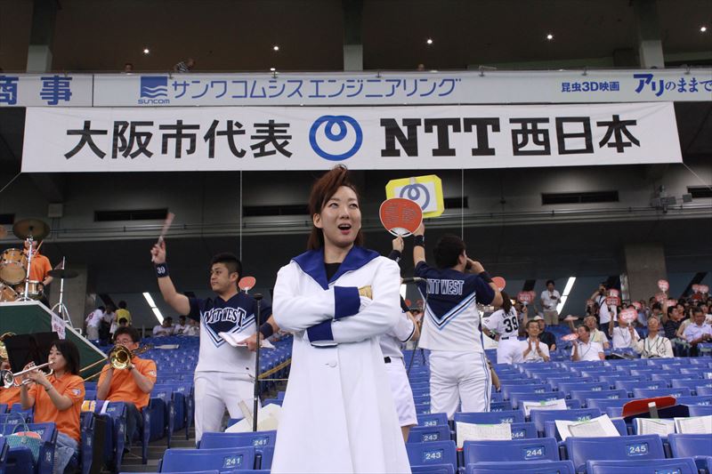 試合は後半まで両者一歩も譲らない緊迫した試合展開でしたが、8回裏ついに我等が大阪市代表NTT西日本が先制点をゲット!!