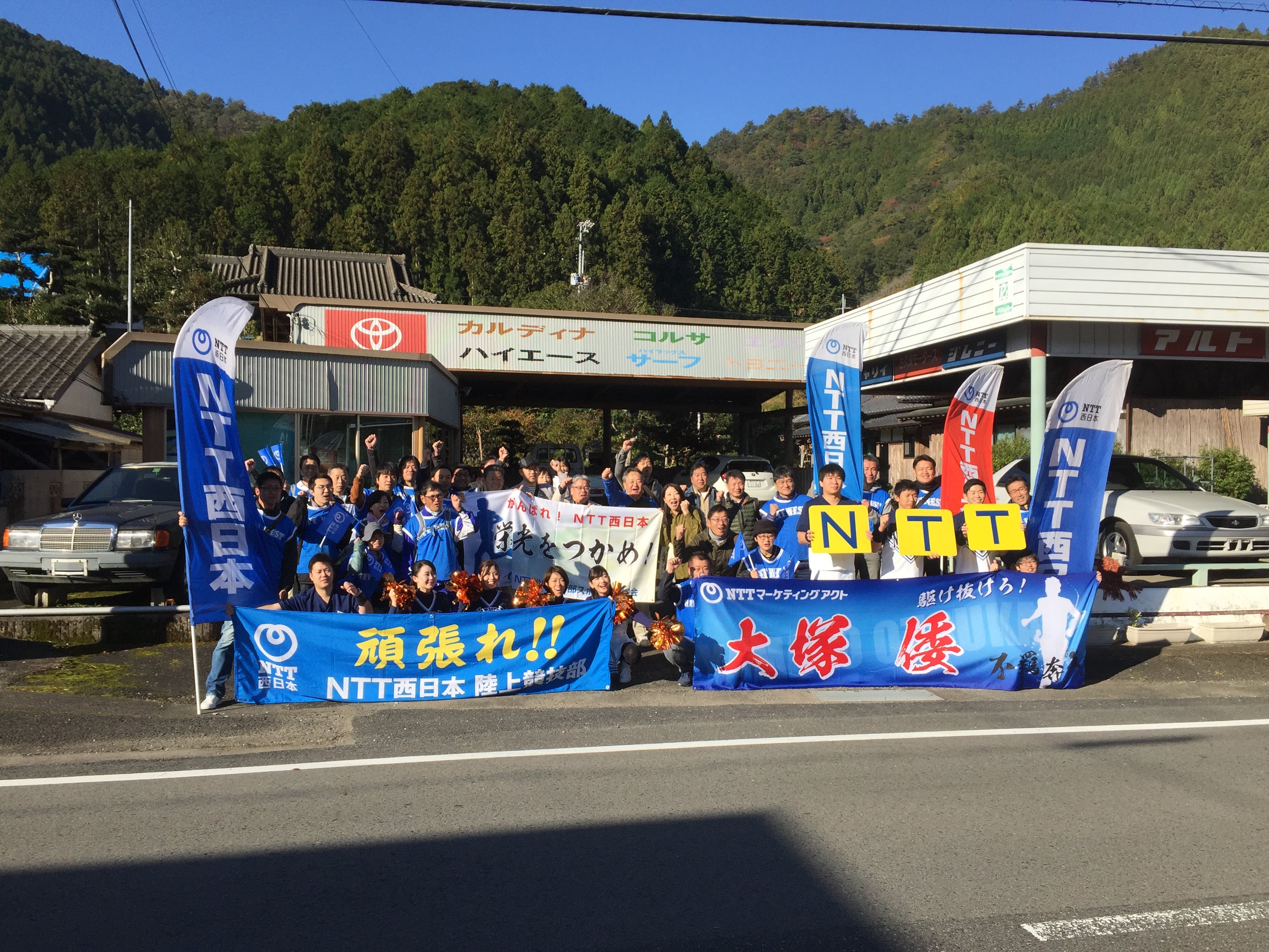 今年もNTT東日本応援団に近いエリアで、NTT西日本応援団も一緒に応援させていただきました。対戦相手はパナソニック様、強豪です。かつ、地元であることから、数多くの動員があり、応援のプレッシャーも凄まじいものがありました。しかし、我々は数では負けているものの、質で負けるわけにはいきません。声を張り上げ選手に声援を送りました。