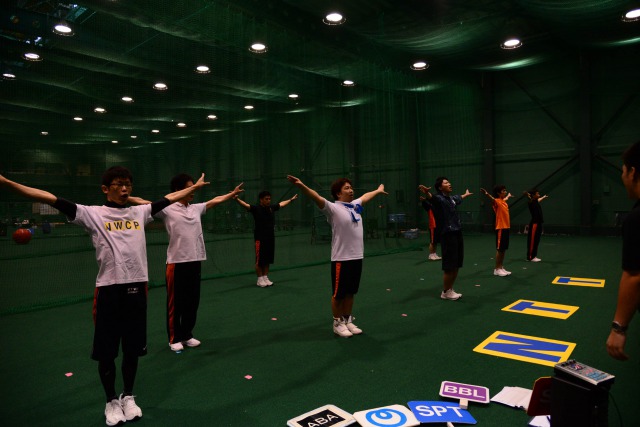 9日の午前は男子リーダーとチアリーダーそれぞれに分かれての個別練習。