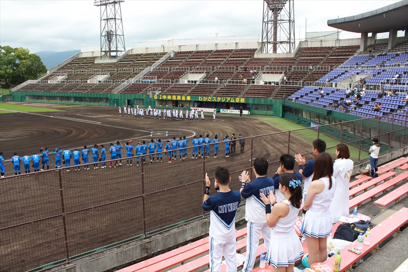 始めにNTT西日本は中村選手のソロHRで先制点をゲット!