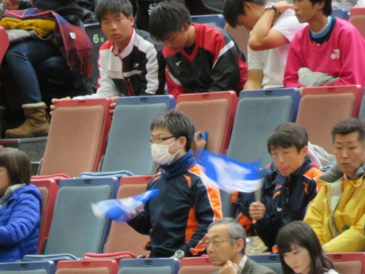 出場した選手は、水澤・村上ペア、丸中・長江ペア、船水・林ペア、岩崎・原ペアの4組。応援席では、選手の直筆サイン入り手旗を振りながら応援をしました。