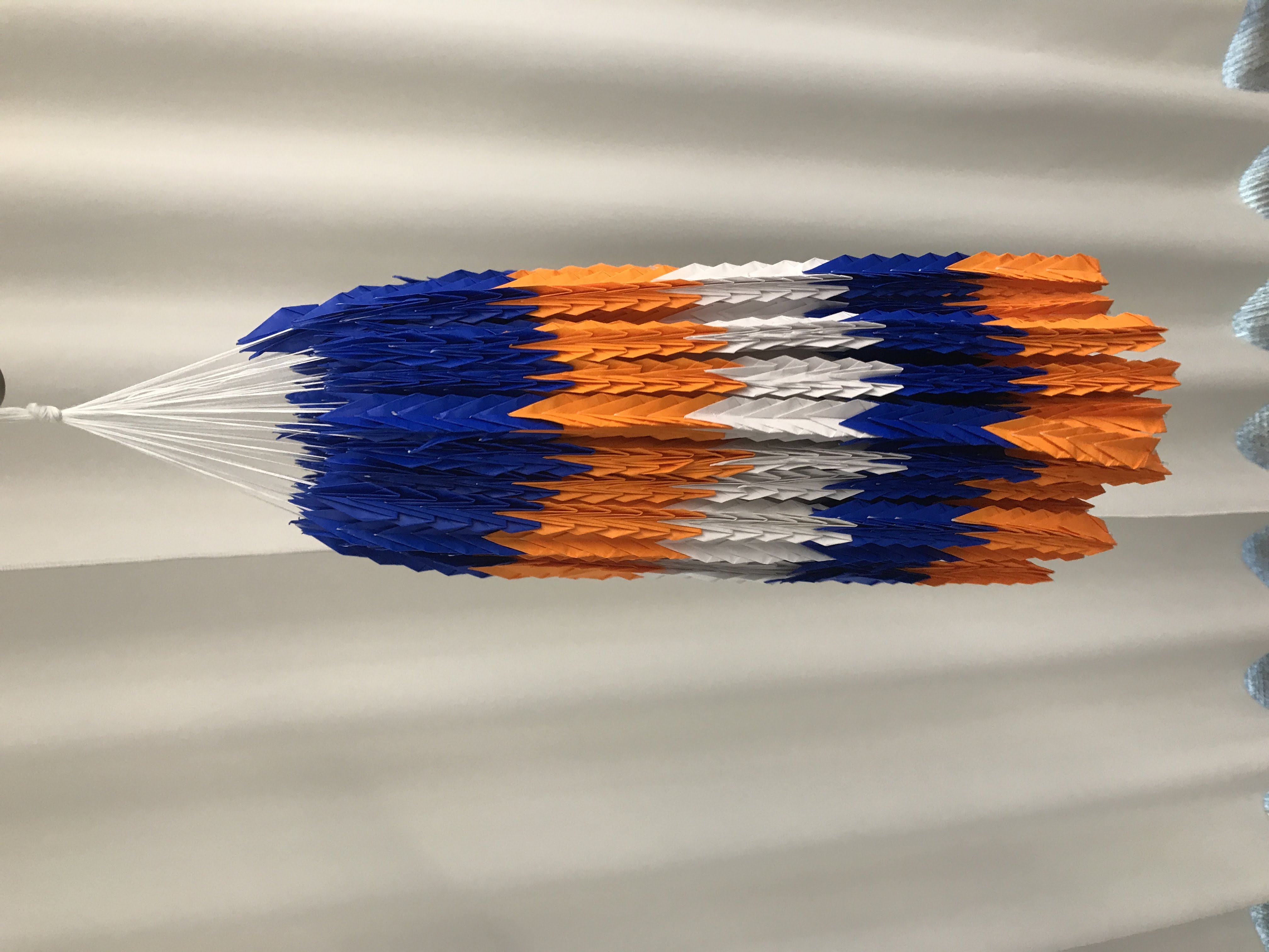 今回の千羽鶴は企業カラーをイメージした青と白で構成されています。