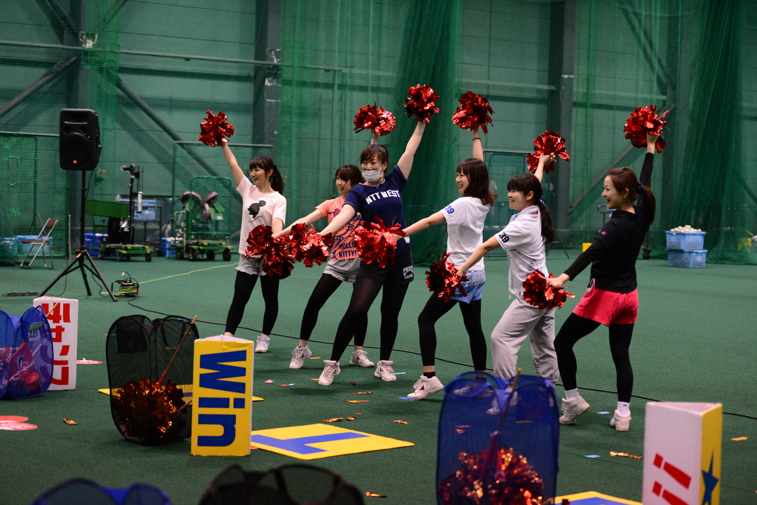 突然ですが、何と今年は! 野球部にアンケートを実施し、人気No.1であった「熱くなれ(大黒摩季)」と、人気No.2であった「紅(X JAPAN)」を新たな応援曲として追加します! 新曲を中心に、ヒッティング曲や、NTT東日本応援団と共通で使用している「スパート」、既存曲の中で野球部人気No.1のNTT西日本応援部作詞・作曲のオリジナル曲「ダイナミックファイターズ」等の、演奏及び演舞を披露させていただきました。球場に足を運んでいただいた際は、是非、新曲にも注目してご声援をおくっていただきますよう、よろしくお願い致します!